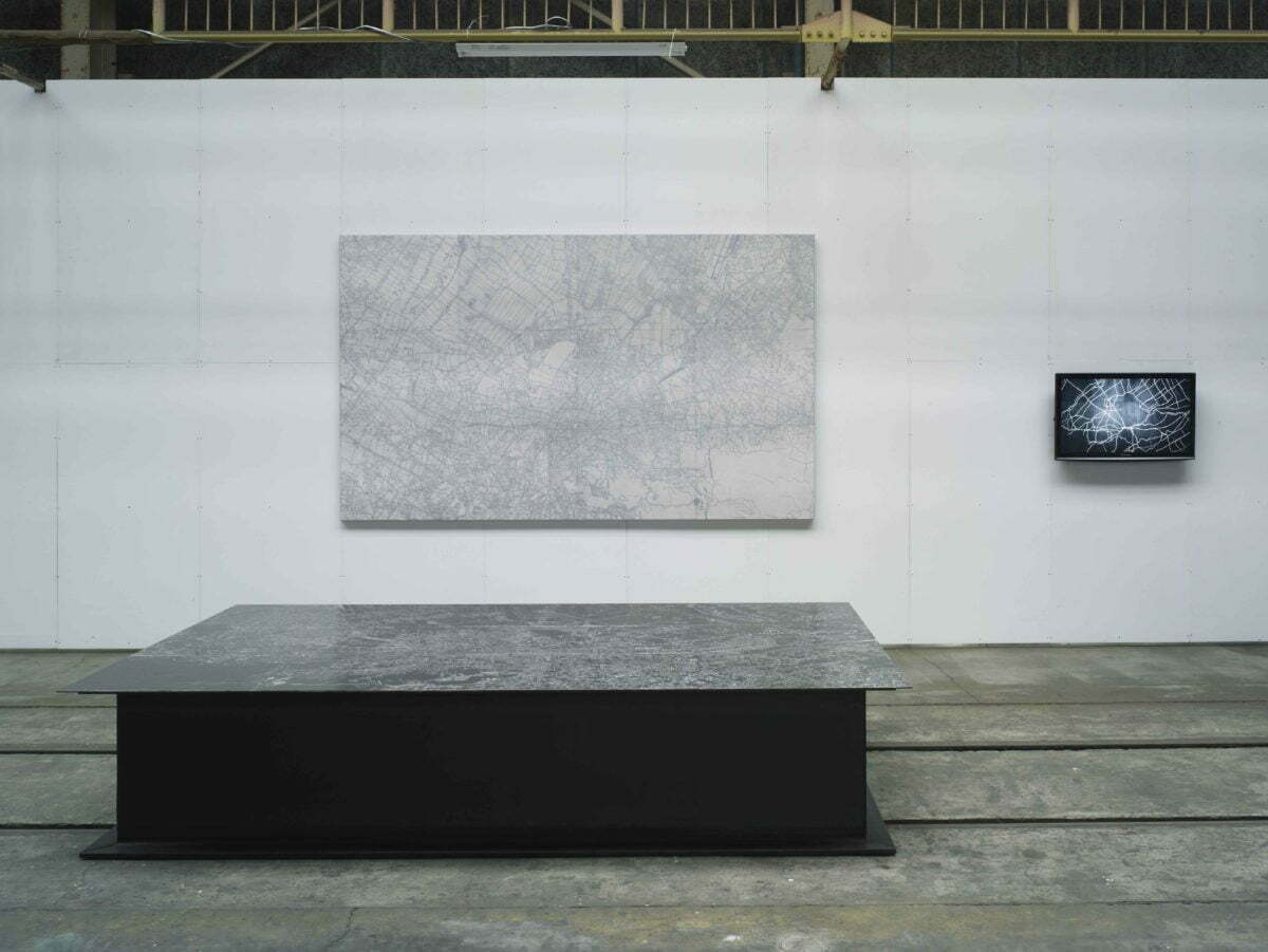 鉄、紙、インク、映像 180×300cm 展覧会:第一回 所沢ビエンナーレ美術展 引込線 撮影者:山本糾